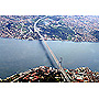 Streetcars and pedestrians, and anglers can be seen on the higher level