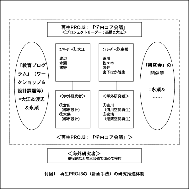 [3] 再生PROJ3の成果物となる「地域・都市・地区再生のデザイン」及び「再生のプランニング」を導き出すための「研究体系の構築」と「アウトプット・イメージ」(素案)を提起。