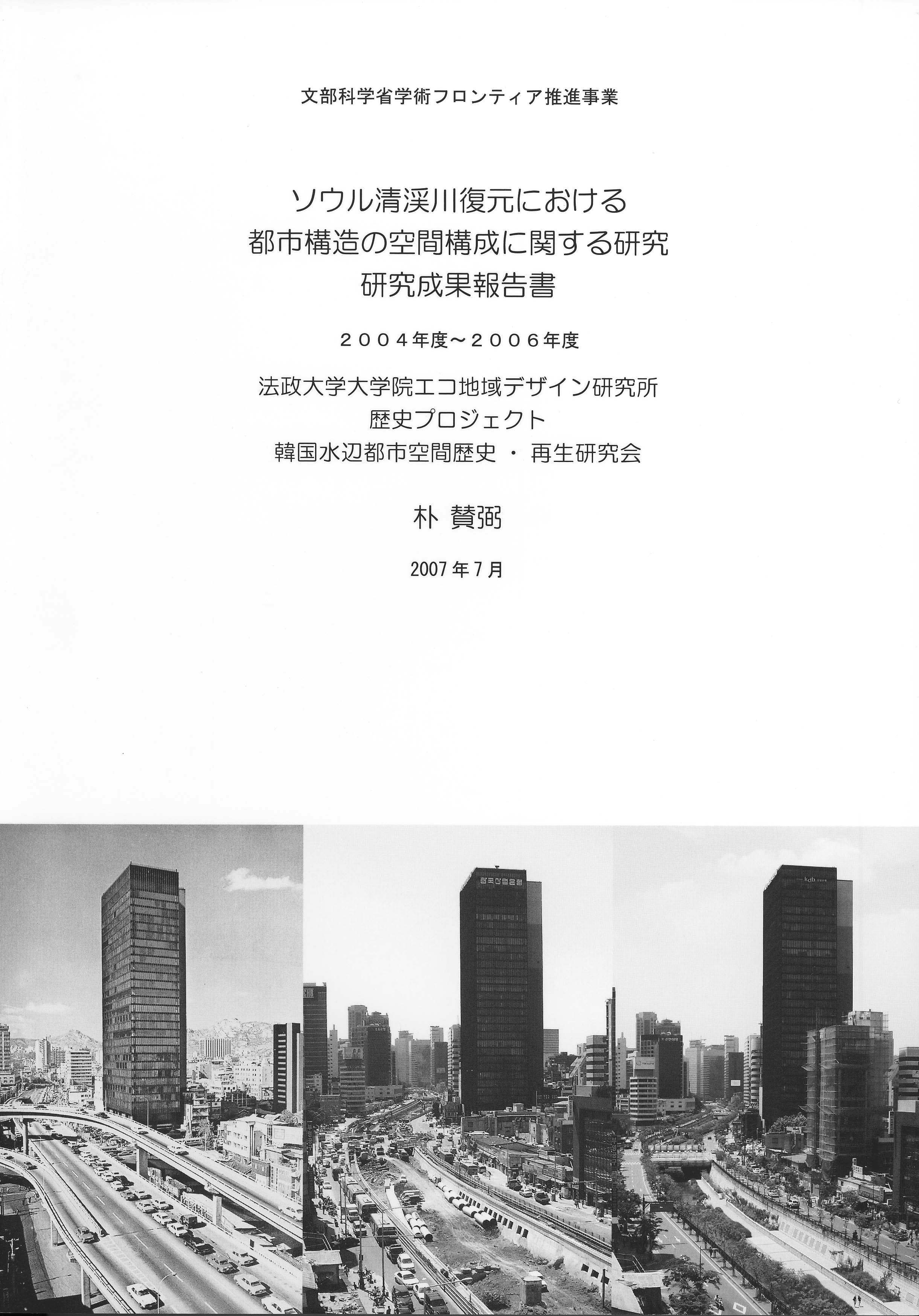 『ソウル清渓川復元における都市構造の空間構成に関する研究 研究成果報告書』 発行日:2007年7月 韓国水辺都市空間歴史・再生研究会 著 者:朴 賛弼