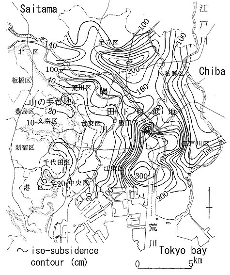 [Figure 2 1938年から1974年までの40年間における地盤沈下状況(遠藤ほか,
