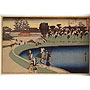 一方、江戸の都市空間において、大名屋敷の建築は逆に眺望の対象となった。名所案内記には載らなかったものの、大名屋敷は首都=江戸に固有の建築であり、その堂々たる外観によって人々の注目を集める「名所」にほかならなかった。錦絵の題材となるのは例外的であったが、その少数の例を見ると、とりわけ「水」とともに描かれた構図が多いことに気づく。広重「江戸勝景」の佐賀藩上屋敷(山下門内)、彦根藩上屋敷(外桜田、図3)、延岡藩上屋敷(虎ノ門、図4)などである。建築を視覚的に引き立てる空間的な広がりをもつ水辺に立地した屋敷が、とくに景観的にすぐれた「名所」として絵画化されたといえよう。