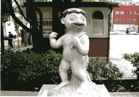 [図5 錦糸掘公園のカッパ像(地元有志が町おこしの一環として設置したもの]