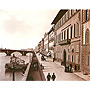ローマ時代のフィレンツェの復元図から、最初は両側を結ぶのにボート用いて、次に木の橋が架かり、ポンテ・ヴェッキオが建設され、港の施設は部分的に舟運があったものの、活発に使いこなされてはなかったことがわかる。