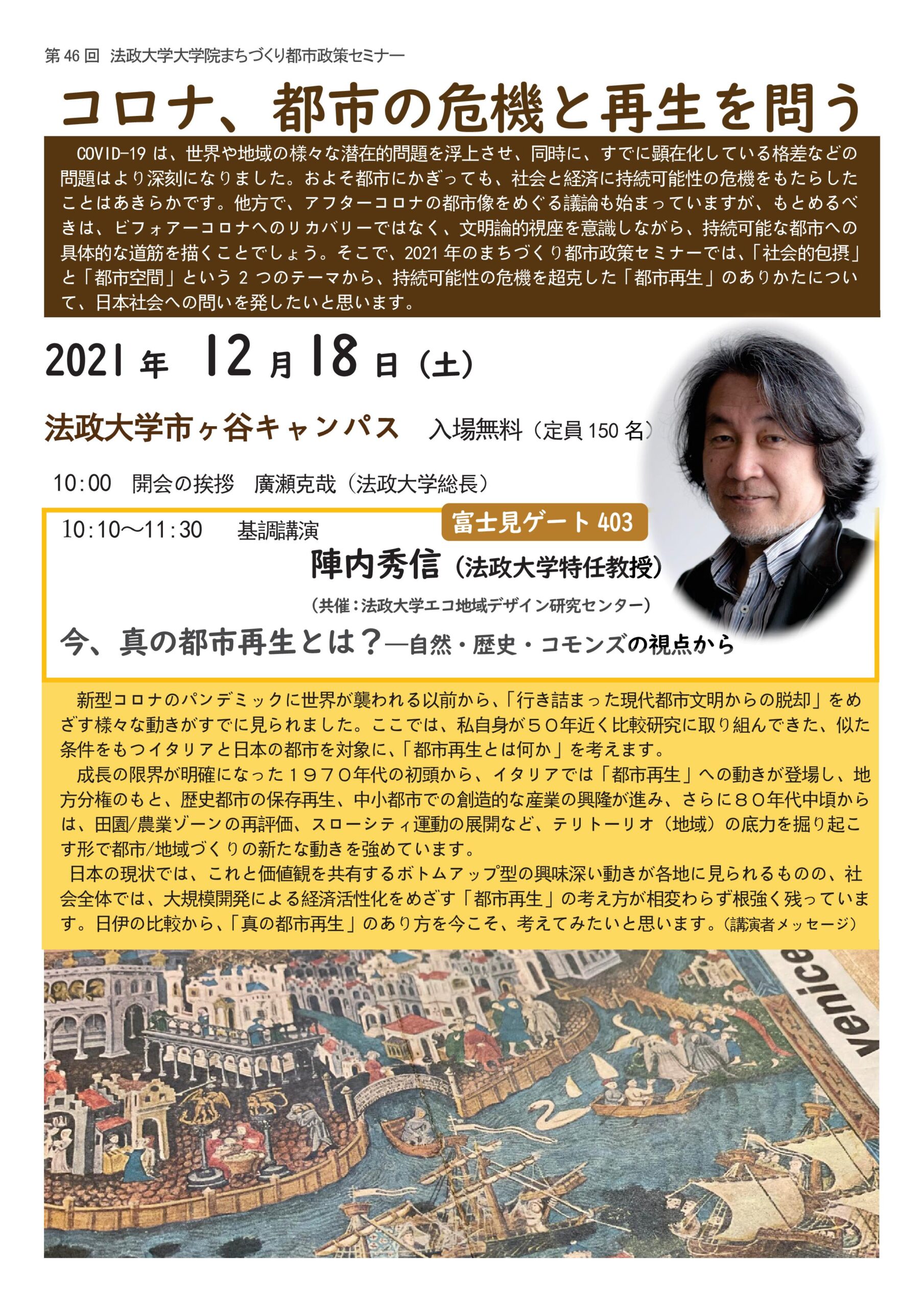 10:10~11:20 基調講演「今、真の都市再生とは?」 / 富士見ゲート 4階G403教室